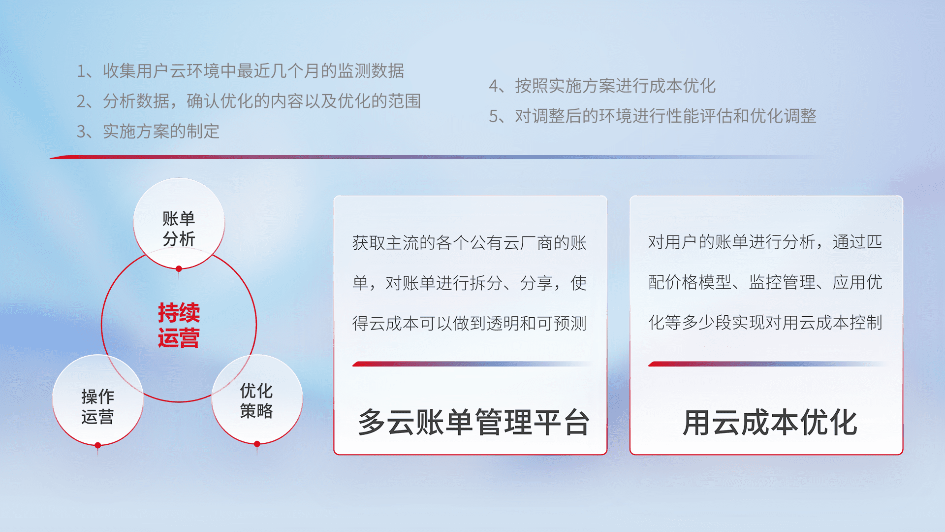 通过多云纳管,,,以统一的资源数据模型把客户的云资源进行抽象和封装,,进而实现对多云资源的统一操作,,保障云资源管理的可靠性、、、、稳定性与可用性。。。。量身定制化运维内容,,,配置、、、、开发运维、、补丁管理、、备份、、、、监控、、、、认证和访问管理、、审计和日常巡检等,,保障在用云过程中的可靠度,,稳定度以及高可用率。。。。